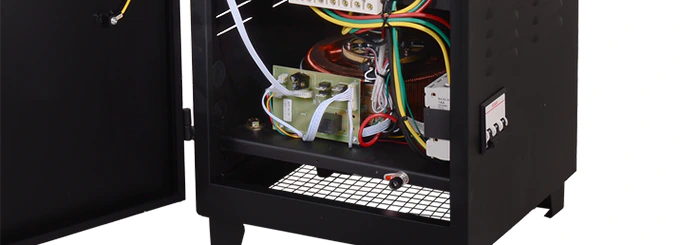 В отличие от релейных моделей стабилизатор использует электромеханический принцип стабилизации с подвижным угольным контактом, скользящим по обмотке автотрансформатора. Оборудование обеспечивает высокую точность выходного напряжения — 2% даже при значительных колебаниях в сети.