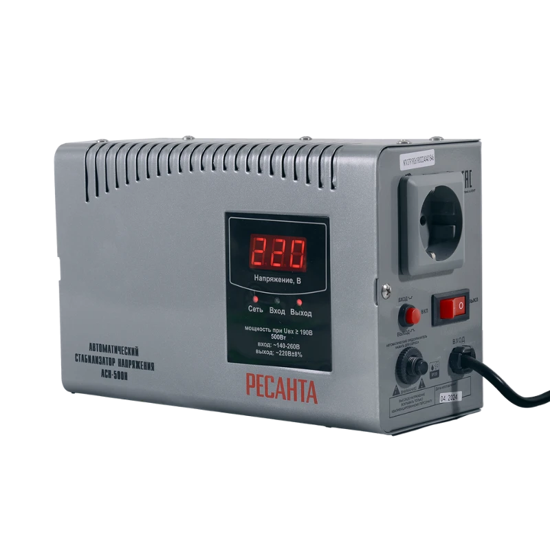 Стабилизатор данной модели моментально реагирует на скачки напряжения, поэтому предупреждает выход из строя эксплуатируемой техники. Предназначен для подключения к однофазной сети. Стабилизатор напряжения помещен в прочный корпус, который обеспечивает защиту внутренним компонентам от механических повреждений. Имеет микропроцессорное управление, а также комплектуется фильтром сетевых помех, цифровым индикатором. Стабилизатор Ресанта АСН-500 Н имеет эргономичный дизайн и компактные размеры. Благодаря отсутствию искажения синусоиды, обеспечивает стабильное напряжение с максимальной силой тока 2,6 А.