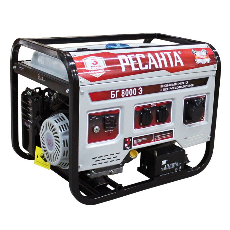 Электрогенератор РЕСАНТА БГ 8000 Э — устройство мощностью 6500 Вт для автономного снабжения электроэнергией жилищных и коммерческих объектов, например, магазинов и офисов.