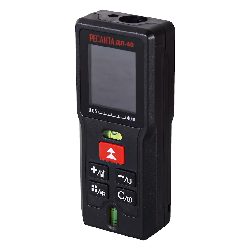Внутренняя память устройства, позволяет сохранять до 20 измерений, обеспечивая максимальное удобство работы с прибором. РЕСАНТА ДЛ-40 автоматически вычисляет площадь, объем, а также третью сторону прямоугольного треугольника.