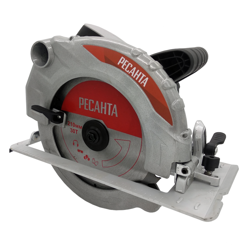 Циркулярная пила Ресанта оборудована защитным кожухом, который закрывает пильный диск. Выключатель оснащен блокировкой запуска привода, чтобы избежать непроизвольного старта.При замене режущего диска можно принудительно заблокировать шпиндель для упрощения и ускорения смены оснастки.