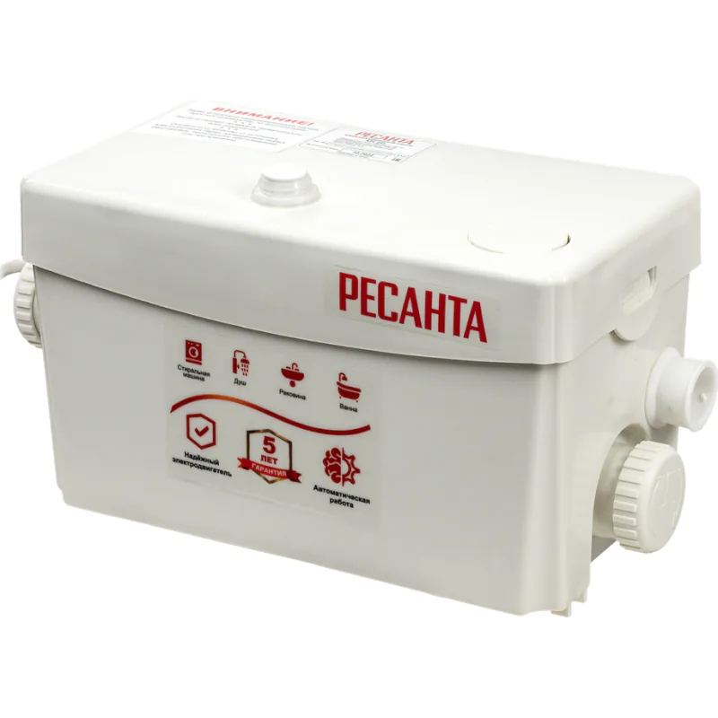 Благодаря компактным размерам насос Ресанта КН 2D можно устанавливать в стесненных условиях небольшого санузла. Входные трубопроводы подсоединяются с помощью хомутов и муфт из комплекта, обеспечивающих герметичность соединений. Во время эксплуатации устройство не требует специального технического обслуживания. Двигатель оснащен термической защитой, выключающей насос в случае перегрева или застопоривания рабочего колеса по причине засора. Верхняя крышка обеспечивает удобный доступ к внутренним элементам для выполнения прочистки.