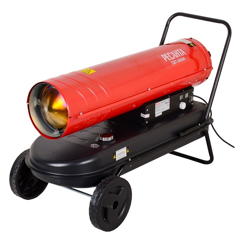 Тепловая пушка РЕСАНТА ТДП-50000 предназначена для обогрева гаража, промышленных объектов и подсобных помещений в холодное время года. Она работает на керосине, солярке или отработанном масле. Дизельный обогреватель обеспечивает высокую производительность при минимальных трудозатратах.