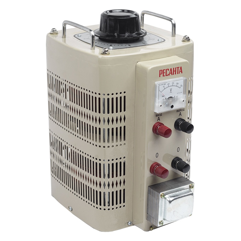 Автотрансформатор Ресанта оснащен вольтметром для визуального контроля значения выходного напряжения. На корпусе есть специальные клеммы для простого подключения к электрооборудованию.
