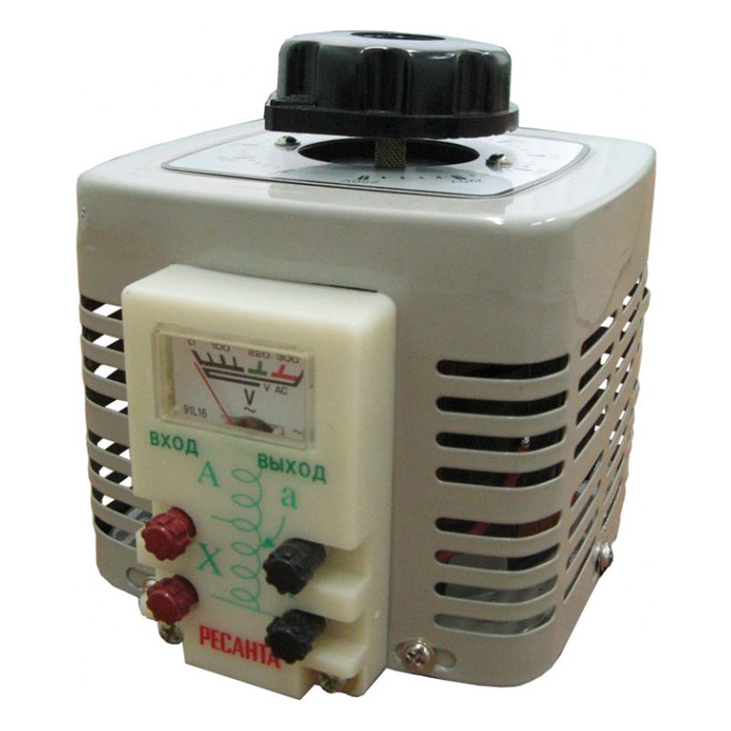Устройство способно регулировать напряжение в диапазоне до 250 В. Выходная мощность составляет 5000 Вт – этого достаточно для бытовых приборов, а также некрупного лабораторного и промышленного оборудования. Сторонние устройства подключаются с помощью клемм.Настройка силы тока осуществляется ручкой в верхней части корпуса. Текущее значение будет отображаться на аналоговом амперметре.